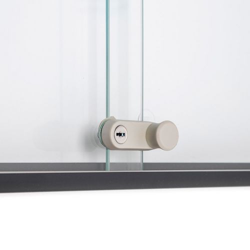 Witryna wewnętrzna SLIM, drzwi przesuwne ze szkła, tył metalowy w kolorze antracytowym