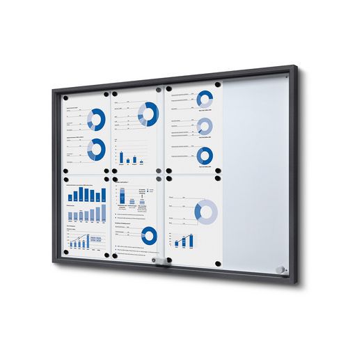 Witryna wewnętrzna SLIM, drzwi przesuwne ze szkła, tył metalowy w kolorze antracytowym, 6xA4
