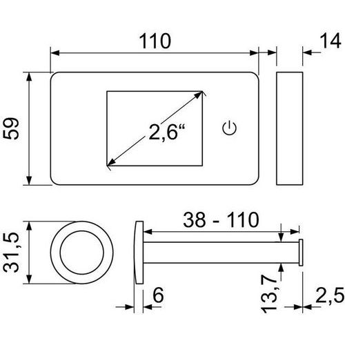 | Dane techniczne | Ekran: 2,6'' LCD 76 800 pikseli, Do drzwi o grubości: 38-110 mm, Kolor: ekran srebrny/czarny, wizjer chrom |