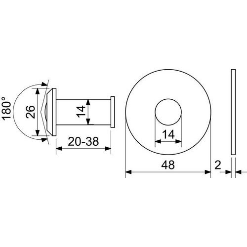 Wizjer do drzwi w zestawie 2 szt. podkładek, nikiel matowy