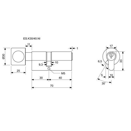Wkładka zabezpieczająca EuroSecure z kulką, K30/40 mm, nikiel