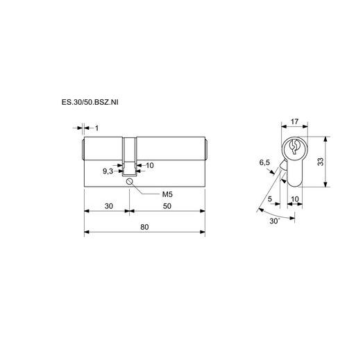 Wkładka zabezpieczająca EuroSecure z wkładką przepuszczającą, 30 mm, nikiel
