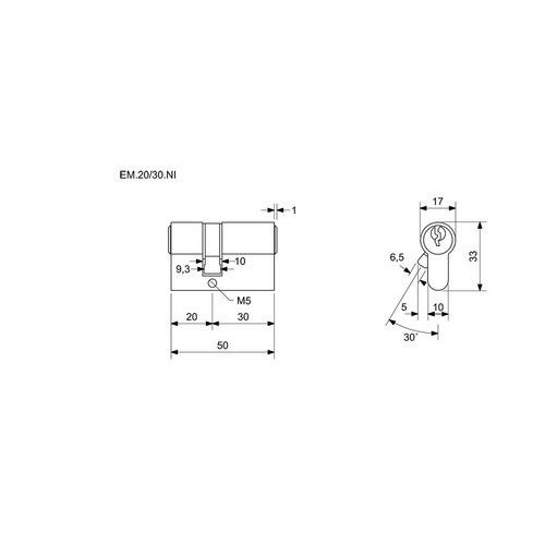 Wkładka do zamka EuroMinus, 20/30 mm, nikiel