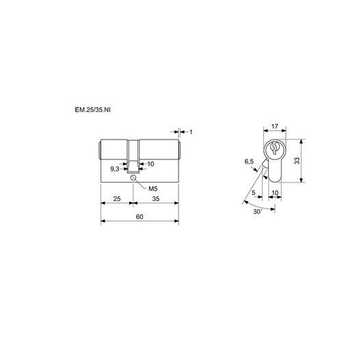 Wkładka do zamka EuroMinus, 25/35 mm, nikiel