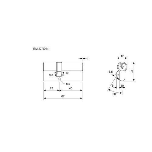 Wkładki do zamka EuroMinus, 27 mm, nikiel