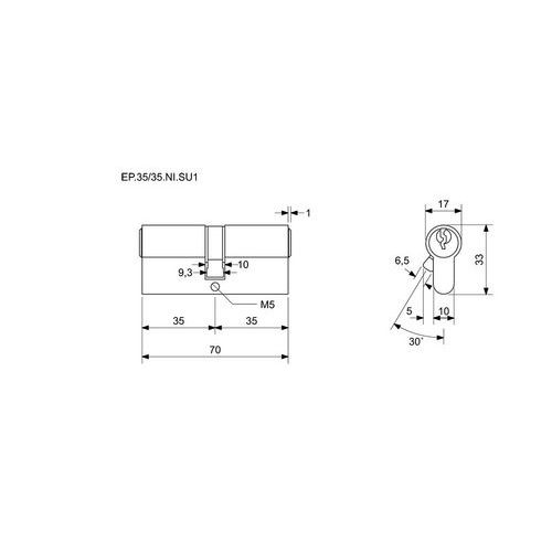 Wkładka do zamka EuroPlus, 35/35 mm, SU1, nikiel