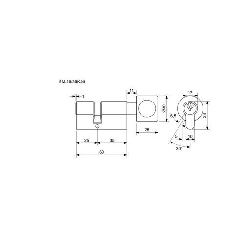 Wkładka konstrukcyjna EuroMinus z kulką 25/K35 mm, nikiel