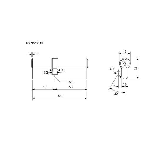 Wkładka zabezpieczająca EuroSecure, 35/50 mm, nikiel