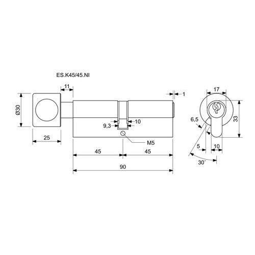 Wkładka zabezpieczająca EuroSecure z kulą, 45/45 mm, nikiel