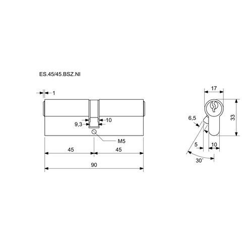 Wkładka zabezpieczająca EuroSecure z wkładką przepuszczającą, 45/45 mm, nikiel