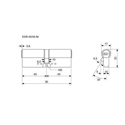Wkładka zabezpieczająca EuroXStar, 45/45 mm, nikiel