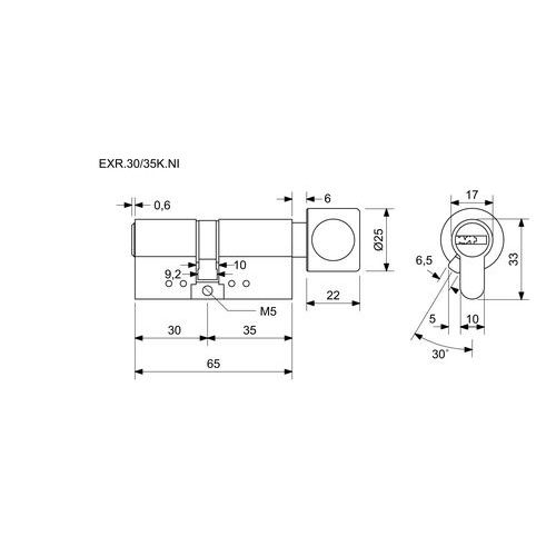 Wkładka zabezpieczająca EuroXStar z kulą, 30/35 mm, nikiel