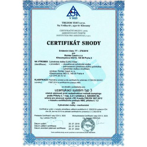 - Certyfikowana w klasie bezpieczeństwa RC4 na podstawie ČSN EN 1627:2012.