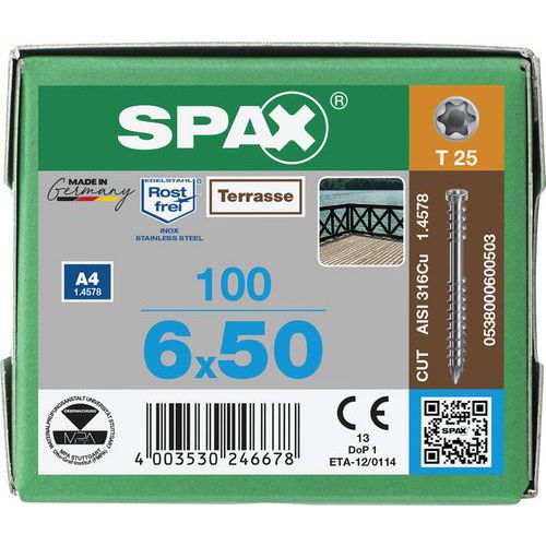| Nazwa produktu | Wkręty do drewna Spax TX Terrasse z łbem walcowym ø 6 mm, 50 mm |