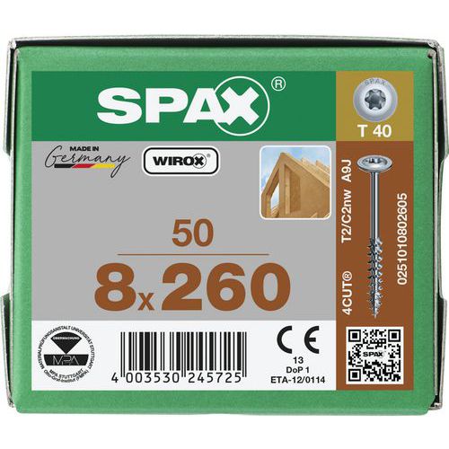Wkręty do drewna Spax TX z łbem płaskim ø 8 mm, 260 mm