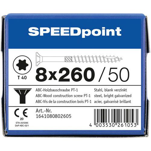 Wkręty do drewna z łbem stożkowym Speedpoint TX ø 8 mm, 260 mm