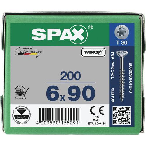 Wysokiej jakości uniwersalne wkręty SPAX z pełnym gwintem przeznaczone są do szybkiej, wydajnej i czystej pracy w drewnie, bez konieczności wstępnego wiercenia.