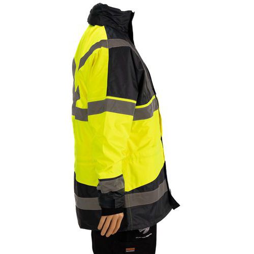 Wodoodporna kurtka o wysokim stopniu ochrony i odpinaną kamizelką. Ciepła, wodoodporna kurtka zimowa składająca się z lekkiego płaszcza przeciwdeszczowego, odzieży wierzchniej i podkoszulka, wszystko w jednym ubraniu. Wygodna w każdych warunkach pogodowych, z dzianinowymi ściągaczami w rękawach. Parka z praktycznymi kieszeniami, idealna do użytku przez cały rok.