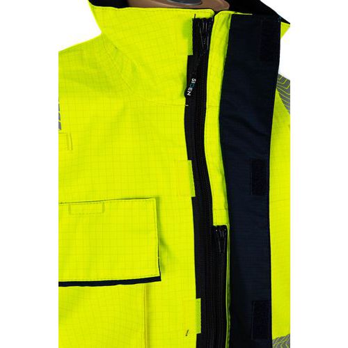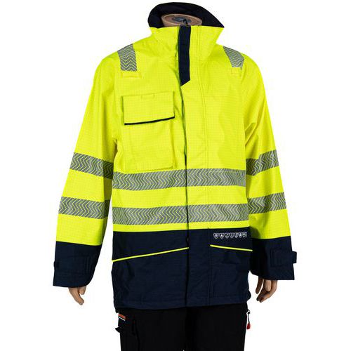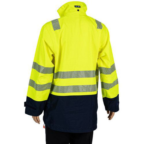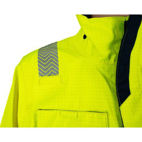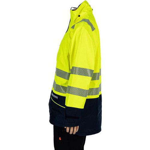 Bardzo lekka, wodoodporna kurtka klasy premium, która chroni przed ryzykiem wyładowania łukowego. Segmentowe paski odblaskowe zapewniają lepszą oddychalność. Przedłużony tył i wstępnie ukształtowane zakończenia rękawów dla większego komfortu. Zapinana na zamek błyskawiczny z wygodnym uchwytem ułatwiającym otwieranie i zamykanie kurtki.