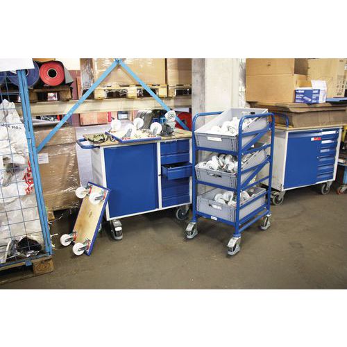 | Nazwa produktu | Wózek regałowy Euro z pojemnikami i półkami skośnymi, 3 półki, 52 x 66,5 x 116 cm, niebieski |