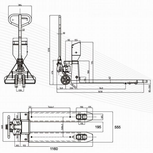 | Nazwa produktu | Wózek paletowy z wagą, do 2000 kg, podgumowane koła sterujące, z weryfikacją UE |