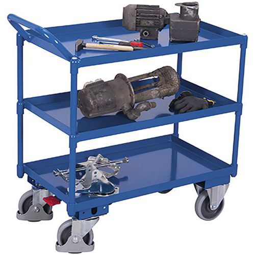 - Wózek półkowy z trzema metalowymi półkami o krawędzi 40 mm.