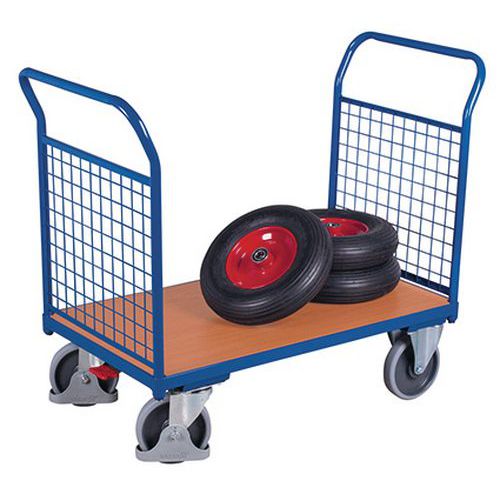 Wózek platformowy z dwoma uchwytami wypełnionymi siatką, do 500 kg, 101,5 x 119 x 60 cm, niebieski Wózek platformowy z dwoma uchwytami wypełnionymi siatką, do 500 kg, 101,5 x 119 x 60 cm, niebieski