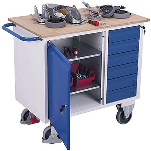 Wózek warsztatowy z szafką i 6 szufladami, 111 x 60 x 96 cm, niebieski