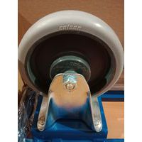 - Koła z termoplastycznej gumy, odporne na zabrudzenia, na plastikowej feldze z łożyskami kulkowymi, zabezpieczeniem antyzaplątaniowym i ochroną stóp.