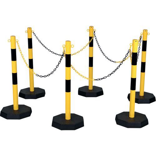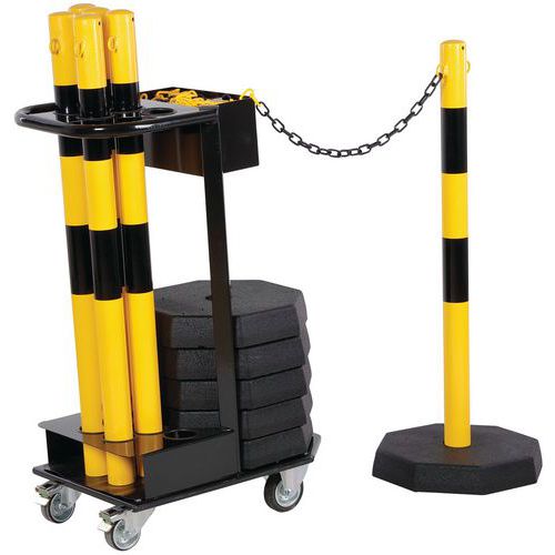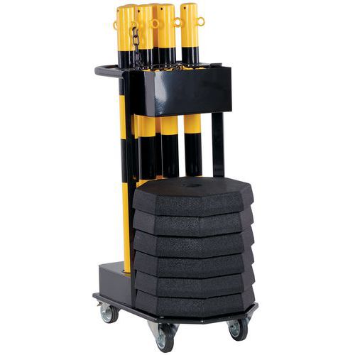 Wózek transportowy ze słupkami, łańcuchem i podstawą Crash Stop, czarno-żółty
