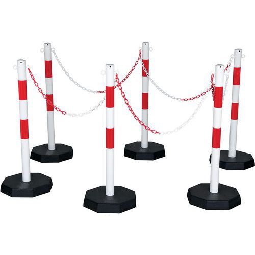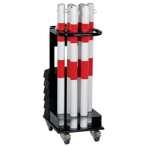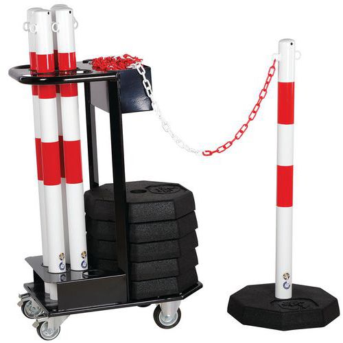 Wózek transportowy ze słupkami, łańcuchem i podstawą Crash Stop, czerwono-biały