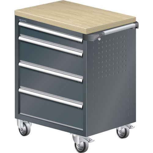 - Wózki warsztatowe LISTA z szufladami, blat z forniru multiplex, 4 szuflady