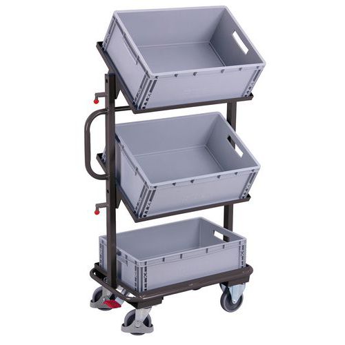 | Nazwa produktu | Wózek z uchwytem pionowym i 3 pojemnikami, z półkami skośnymi, szary |