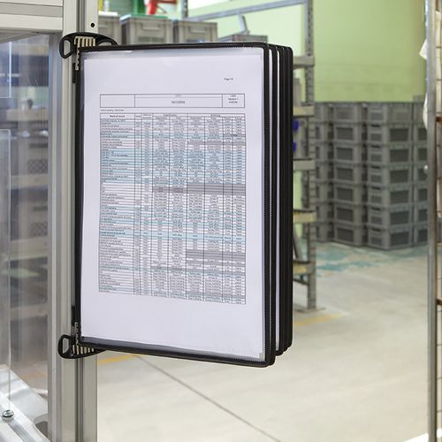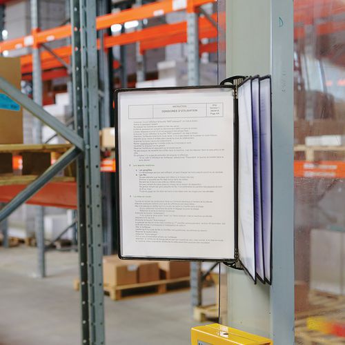 - Magnetyczny uchwyt wiszący z kieszonkami na format A4 można łatwo przymocować do dowolnej metalowej powierzchni.
