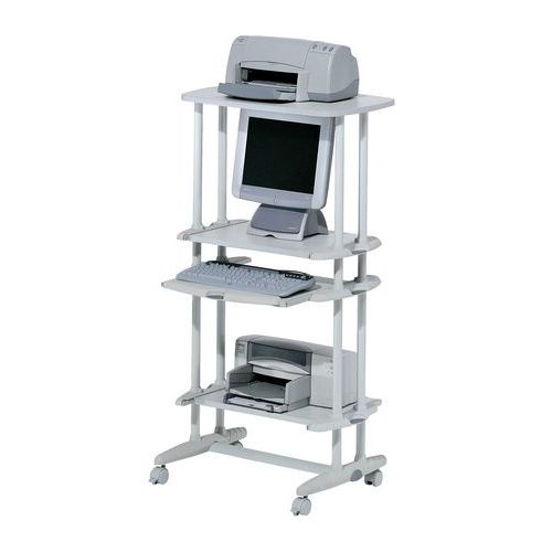 - Wysoki stół na komputer z półkami o regulowanej wysokości położenia. Regulowana plastikowa podpórka pod nadgarstki, półka na klawiaturę.