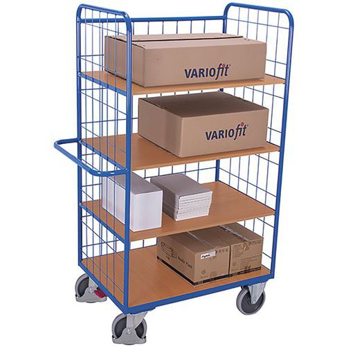 Wózki półkowe ze składanymi półkami i 3 ściankami siatkowymi, 4 półki