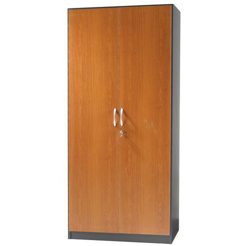 Wysoka szafa biurowa do przechowywania dokumentów i segregatorów. Wykonana z płyty wiórowej. Wyposażona w 4 półki umożliwiające przejrzystą organizację dokumentów. Możliwość zamknięcia szafy. Metalowe rączki w kolorze aluminium. Stopki z możliwością regulacji wysokości. Gwarancja producenta dla klienta : 10 lat