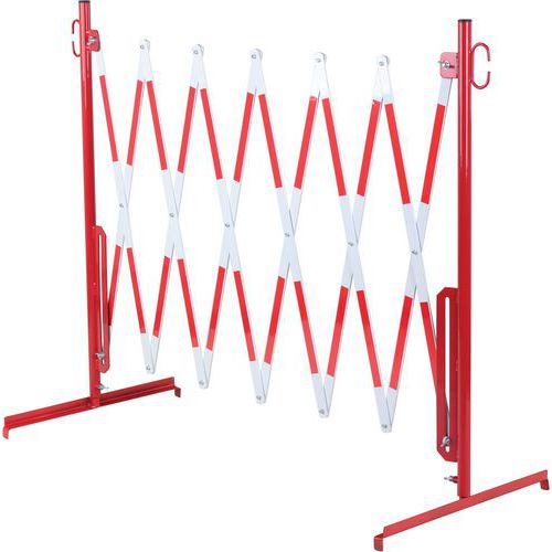 - Składane barierki stalowe z kółkami z jednej strony i kwadratowym słupkiem z drugiej strony.