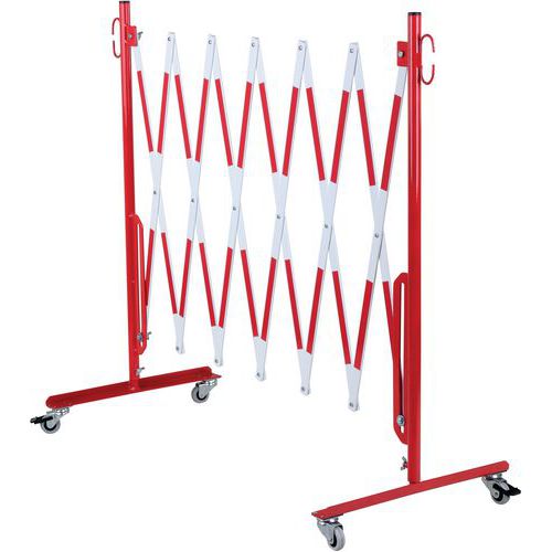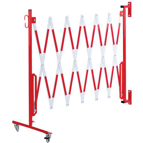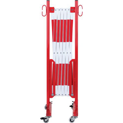 Wysuwana barierka metalowa na kółkach Dancop, montaż ścienny, czerwono-biała, długość 360 cm