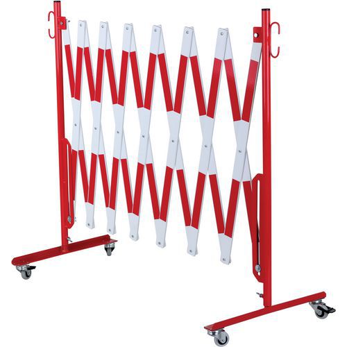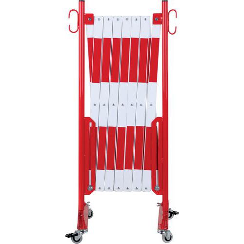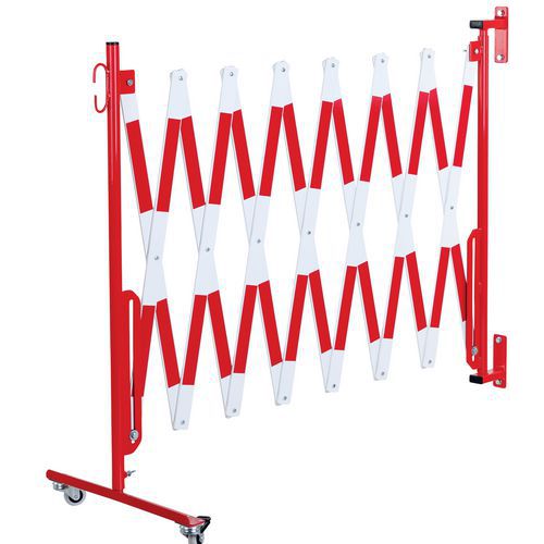 Wysuwana barierka metalowa na kółkach Dancop, montaż ścienny, czerwono-biała, długość 400 cm