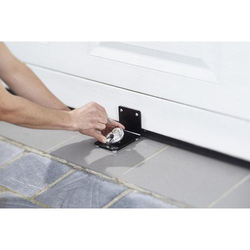 Zabezpiecza drzwi garażowe przed wciśnięciem: dwa wewnętrzne ograniczniki przymocowane do podłogi.