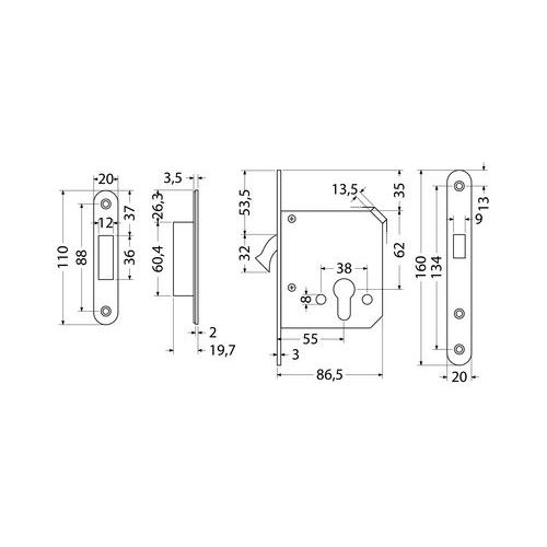 | Nazwa produktu | Zamek hakowy wpuszczany do drzwi przesuwnych z wkładką patentową PZ |