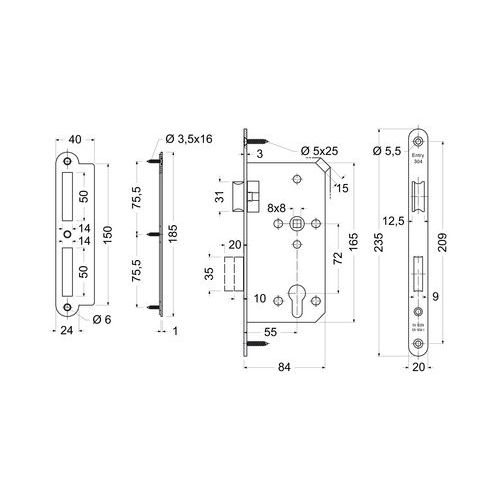Zamek wpuszczany obciążeniowy pod wkładkę patentową PZ