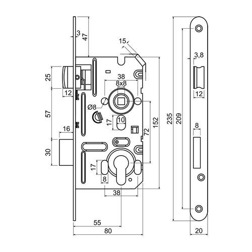 | Nazwa produktu | Zamek wpuszczany pod wkładkę patentową PZ lewy 20mm |