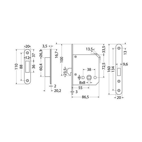 Zamki hakowe wpuszczane do drzwi przesuwnych z klamką WC