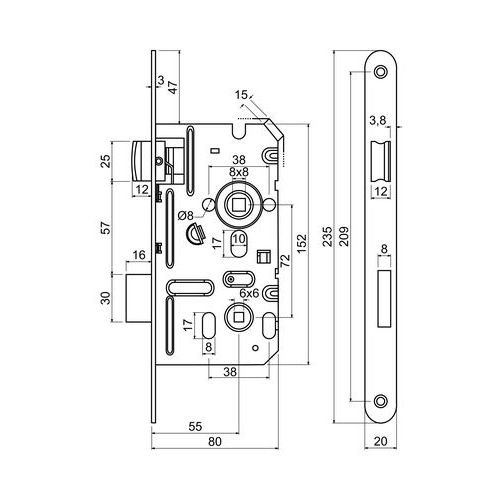 Zamek wpuszczany do klamki WC 20mm prawy czarny
