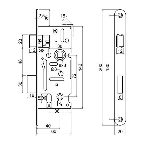 Zamek wpuszczany na klucz dozujący, BB, 20mm