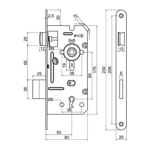 Zamek wpuszczany na klucz dozujący, BB, 20mm