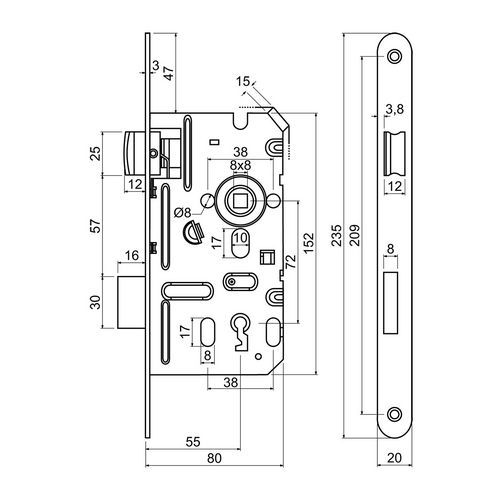 Zamki wpuszczane na klucz dozujący, BB, 20mm