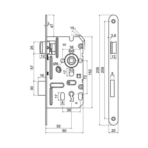 Zamki wpuszczane na klucz dozujący, BB, 20mm